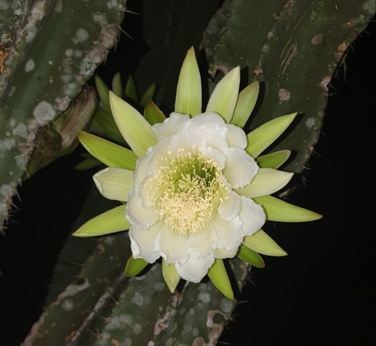 Nach einem schnellen Mittagessen machten wir uns auf den Weg nach Mérida. Hier hatten wir ein Plätzchen bei jemandem gefunden, der seinen «Garten» zu einem kleinen Campingplatz umbaute. Später am Abend durften wir noch erleben, wie der Kaktus blühte. Der Besitzer erzählte uns, dass sich die Blüten nur einmal in der Nacht öffnen und dann verwelken.
